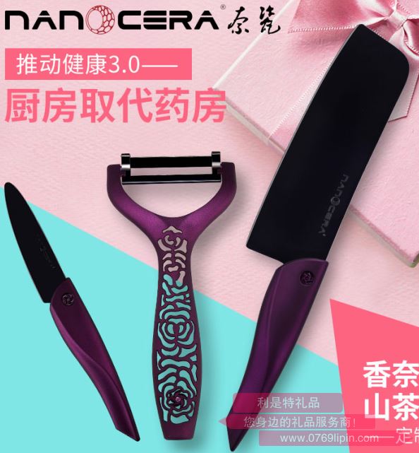 水果刀和廚刀使用全鏡面拋光設計,易沖洗,健康無菌,不氧化,不生銹,單開口專利,使刀口鋒利無比,輕便靈活。水果刀搭配刀鞘,安全攜帶。獨家專利、刀尖、刀背、刀跟等三處圓角,圓潤弧度,360度最貼心安全的防護。流線型手柄,抓握舒適,集人體工學和美學于一身;削皮刀,首次采用無塑料擋板的彈性瓷刀片,清洗方便,也不藏細菌,安全衛生;