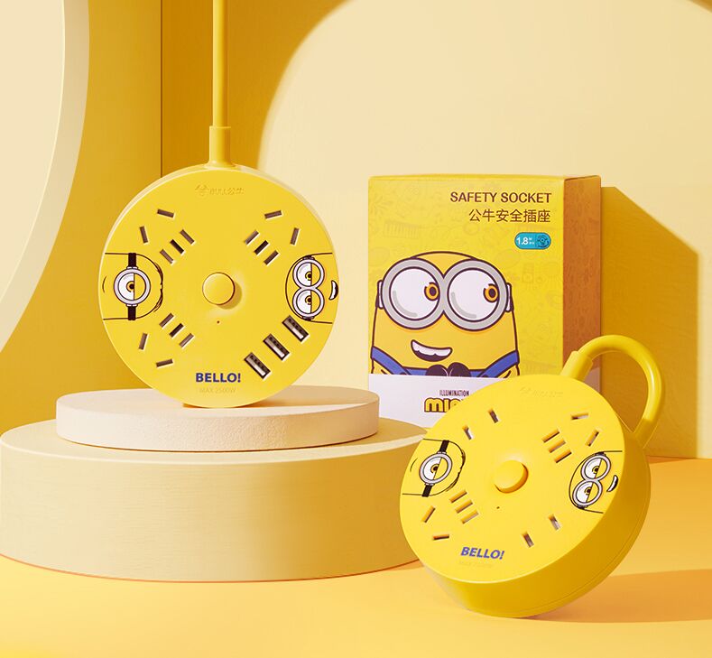 公牛公牛小黃人卡通創意圓形插排插座
